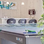 Opcje wyżywienia obejmują pełnowymiarową kuchnię z kuchenką mikrofalową, lodówką i przyborami kuchennymi, a także urządzenie do parzenia kawy/herbaty. Tenis stołowy i bilard są wśród możliwości aktywnego wypoczynku.